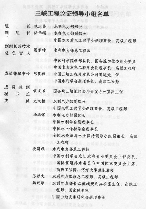 三峡工程论证领导小组名单